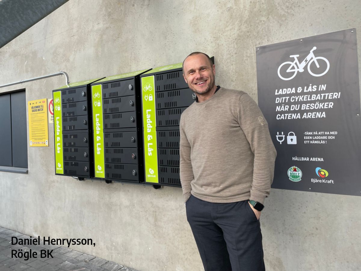 - Laddningsmöjligheterna för elsparkcyklar och mobiler är i första hand tänkta för våra ungdomar som tränar i vår anläggning, men vi vill att alla besökare ska känna att de kan använda dem. Det här är ett sätt att göra det mer bekvämt för alla som kommer hit, berättar Daniel Henrysson på Rögle.