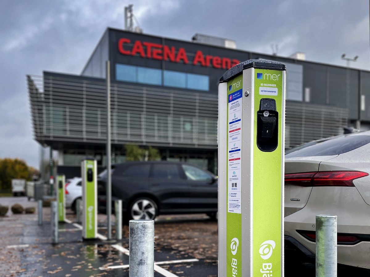 Sedan förra veckan är tre Garo LS4-laddstolpar med totalt sex uttag på plats vid Catena Arena. De fungerar precis som Bjäre Krafts övriga publika laddare – du kan enkelt ladda bilen med Mers app eller genom att scanna en QR-kod.