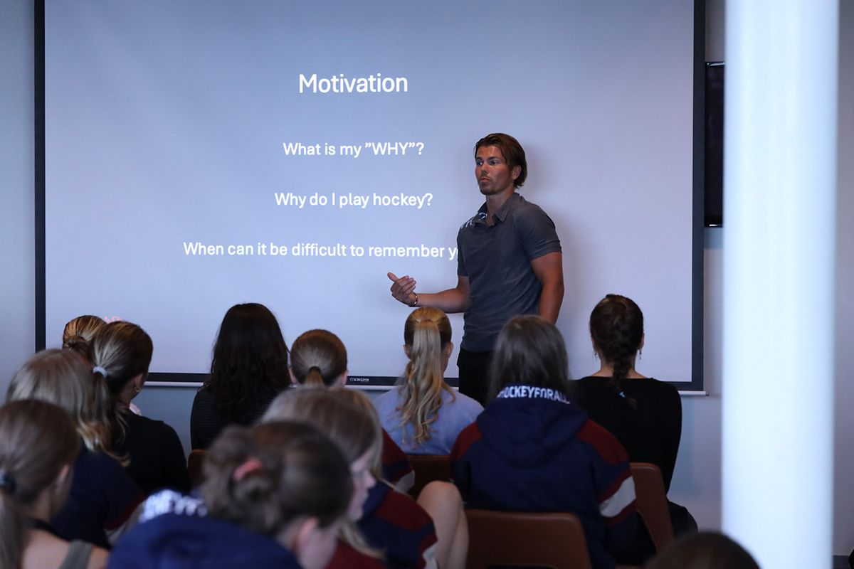 "-För att bli en stark hockeyspelare behöver man förstå sig själv, sin kropp och sitt sinne, och det är precis vad våra teoripass handlar om", fortsätter Maria.