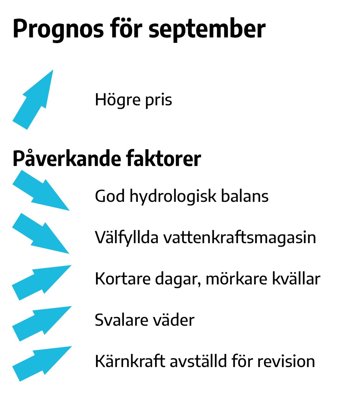 Under september förväntas spotpriserna öka i samtliga elområden. Detta gäller även i SE4, då en del kärnkraft är avställd för årlig revision eller reparation. Trycket från kontinenten fortsätter att driva upp prisnivån.