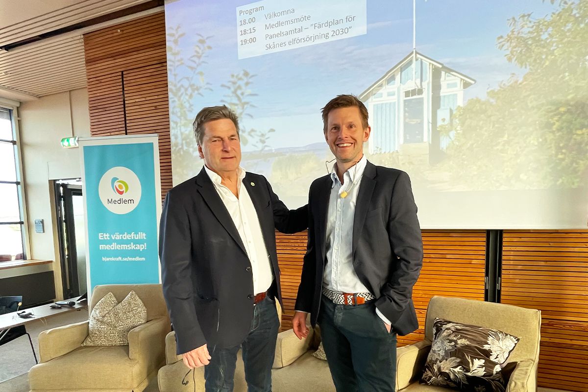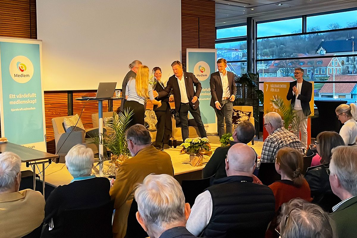Även Bjäre Krafts VD Alexander Jansson deltog i det som blev ett panelsamtal och en dialog med medlemmarna från scenen. Publiken var frågvis och Robert Benckert fick som moderator springa mellan stolsraderna med mikrofonen. Närmare halv nio denna ljusa kväll kunde medlemsmötet och panelsamtalet avslutas med taktfasta applåder från de 150 gästerna. Alexander Jansson kunde summera en lyckad kväll: